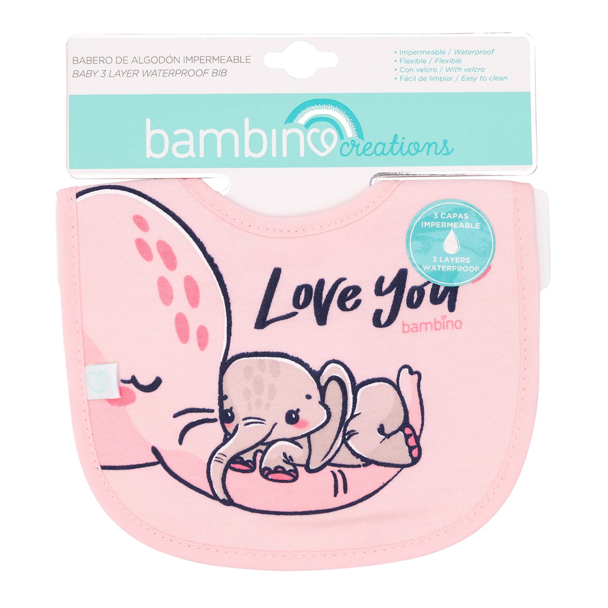 Babero de Toalla Bambino Rosa Elefante